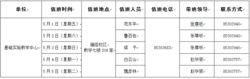 2020年五一值班安排