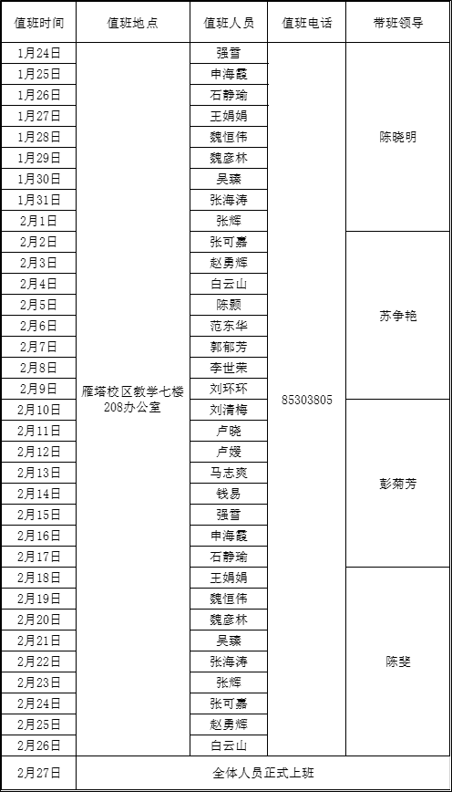 2.值班期间如遇有紧急、重要事项或突发事件,应立即联系带班领导并向学校总值班室(校务楼110室,85310005)报告并妥善处置;